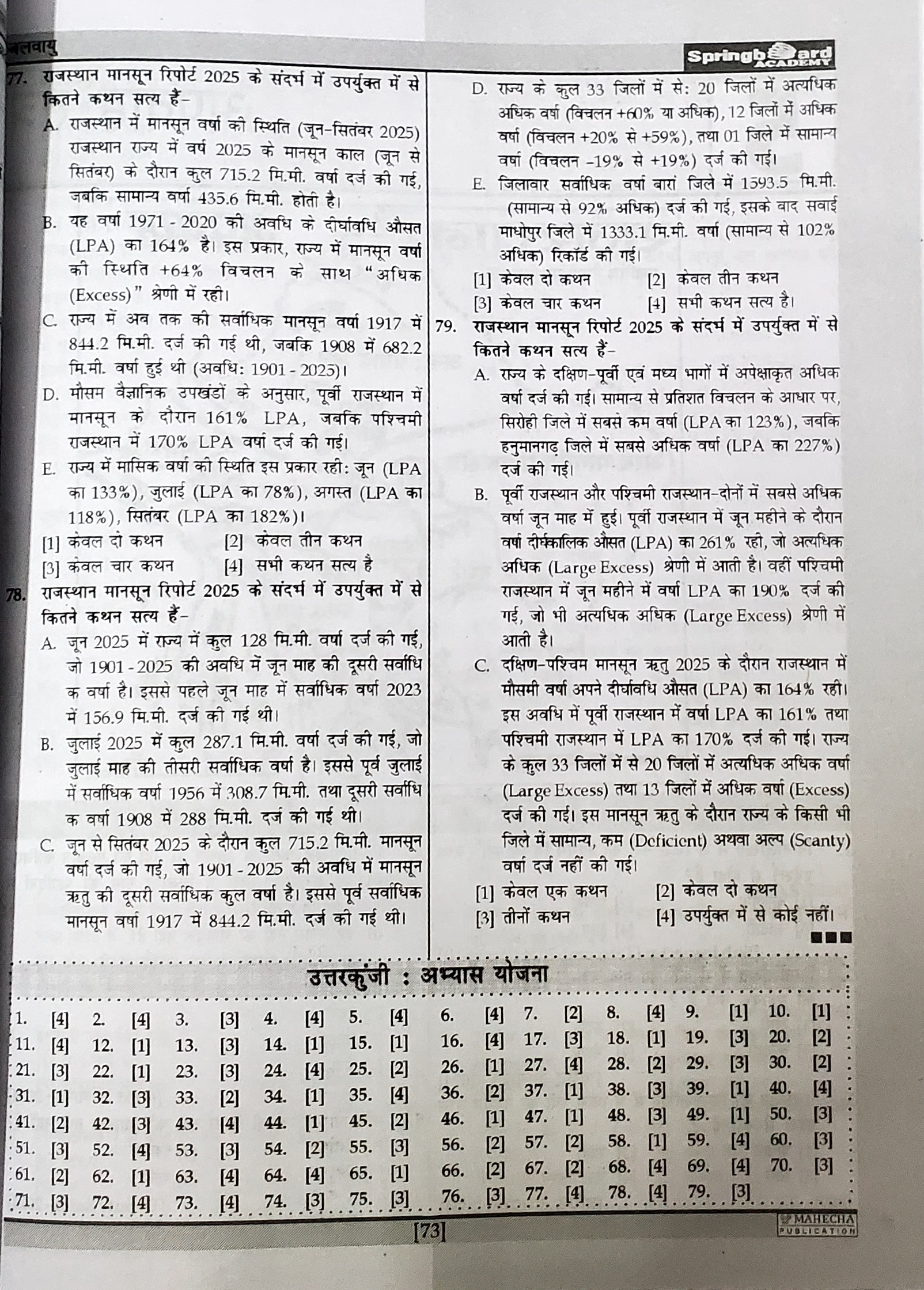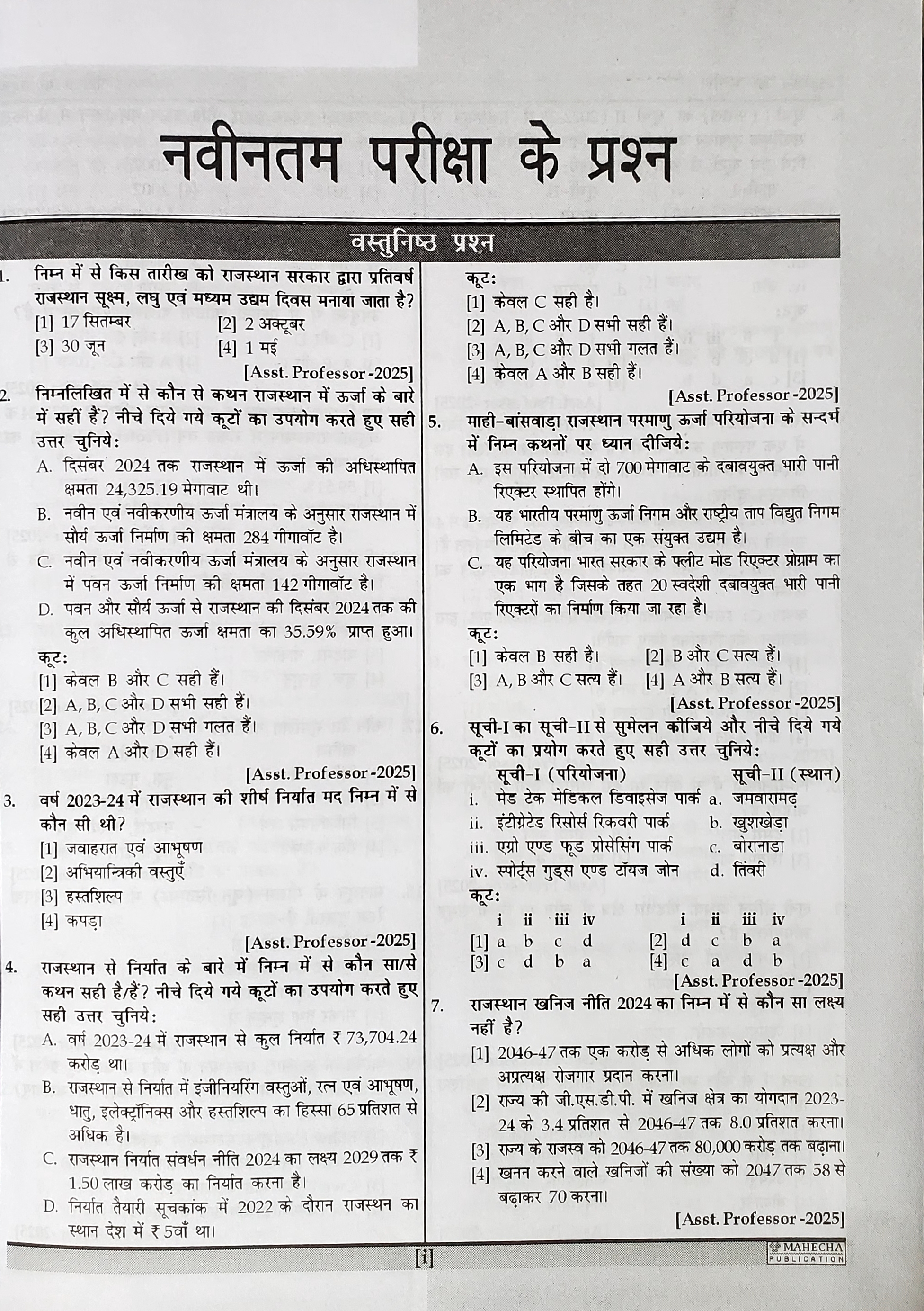 राजस्थान का भूगोल (वस्तुनिष्ठ प्रश्न बैंक)