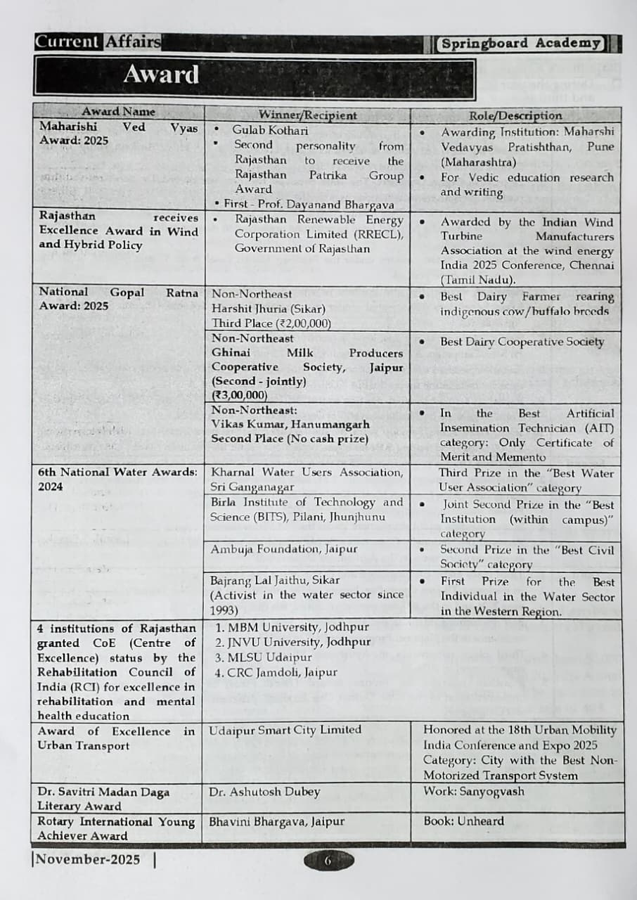 This monthly Current Affairs magazine by Springboard Academy (An Institute of IAS & RAS) is a comprehensive and exam-oriented publication designed for aspirants of competitive examinations conducted by RPSC and RSSB.
